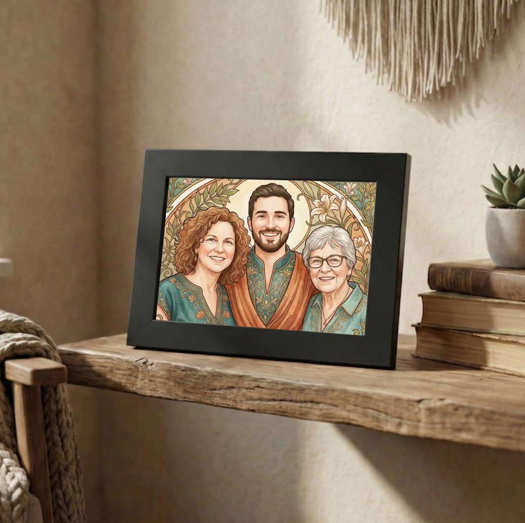 Proměňte svou oblíbenou fotku v originální ilustraci a vystavte ji v elegantním rámečku. Získáte osobní dekoraci, která zaujme na první pohled a zároveň uchová vzpomínku jinak než klasická fotografie. Ideální jako dárek pro partnera, rodinu i přátele.