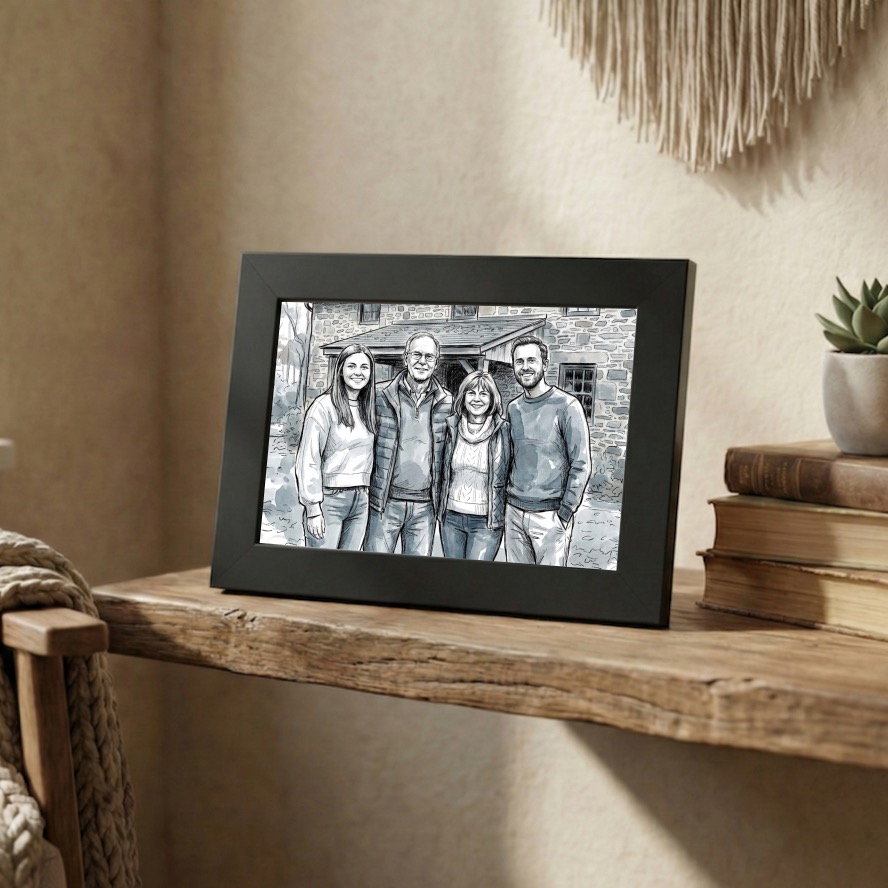 Proměňte svou oblíbenou fotku v originální ilustraci a vystavte ji v elegantním rámečku. Získáte osobní dekoraci, která zaujme na první pohled a zároveň uchová vzpomínku jinak než klasická fotografie. Ideální jako dárek pro partnera, rodinu i přátele.