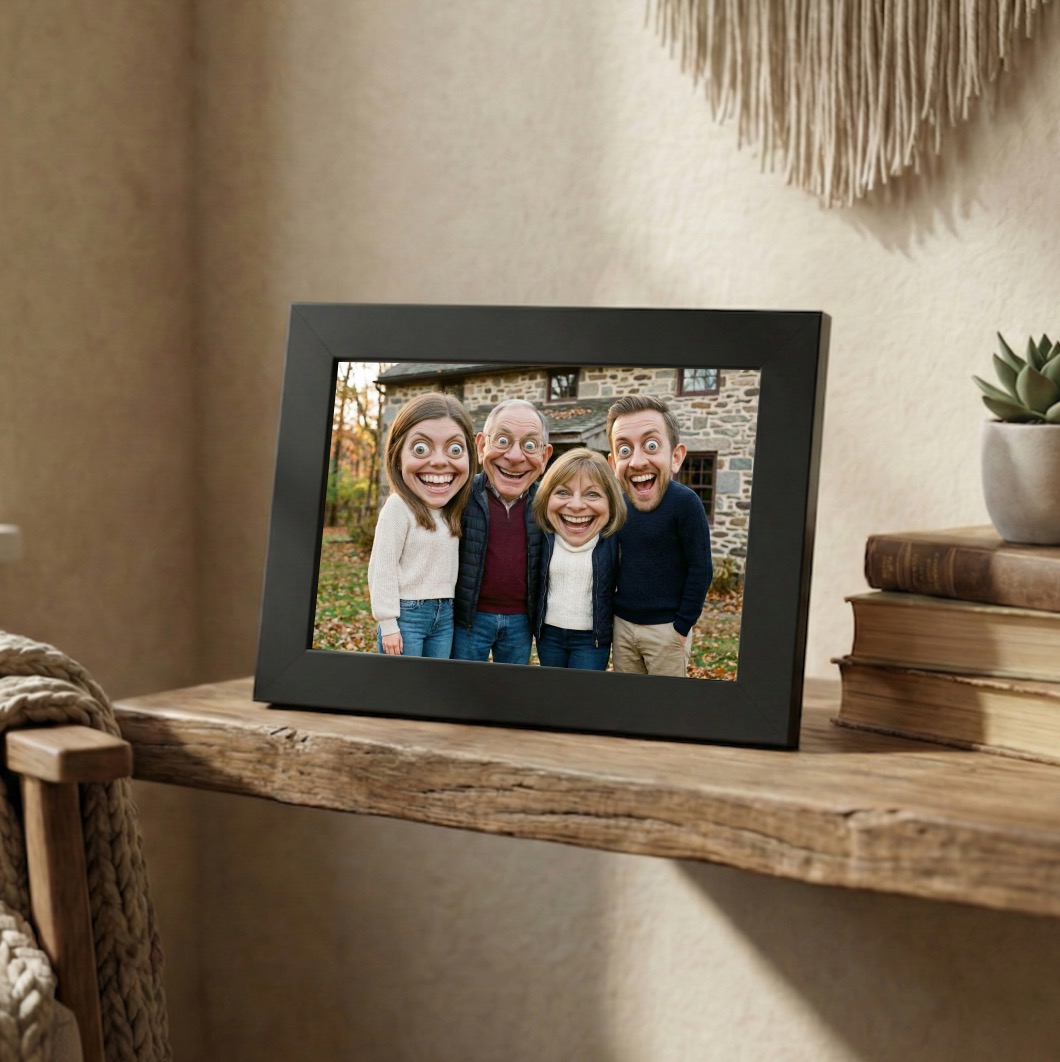 Fotorámeček s ilustrací podle vaší fotky – Veselá foto-karikatura
