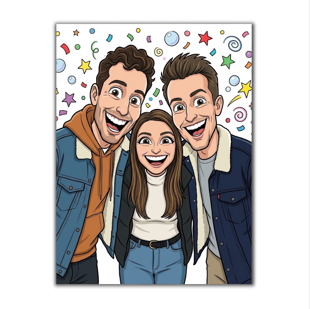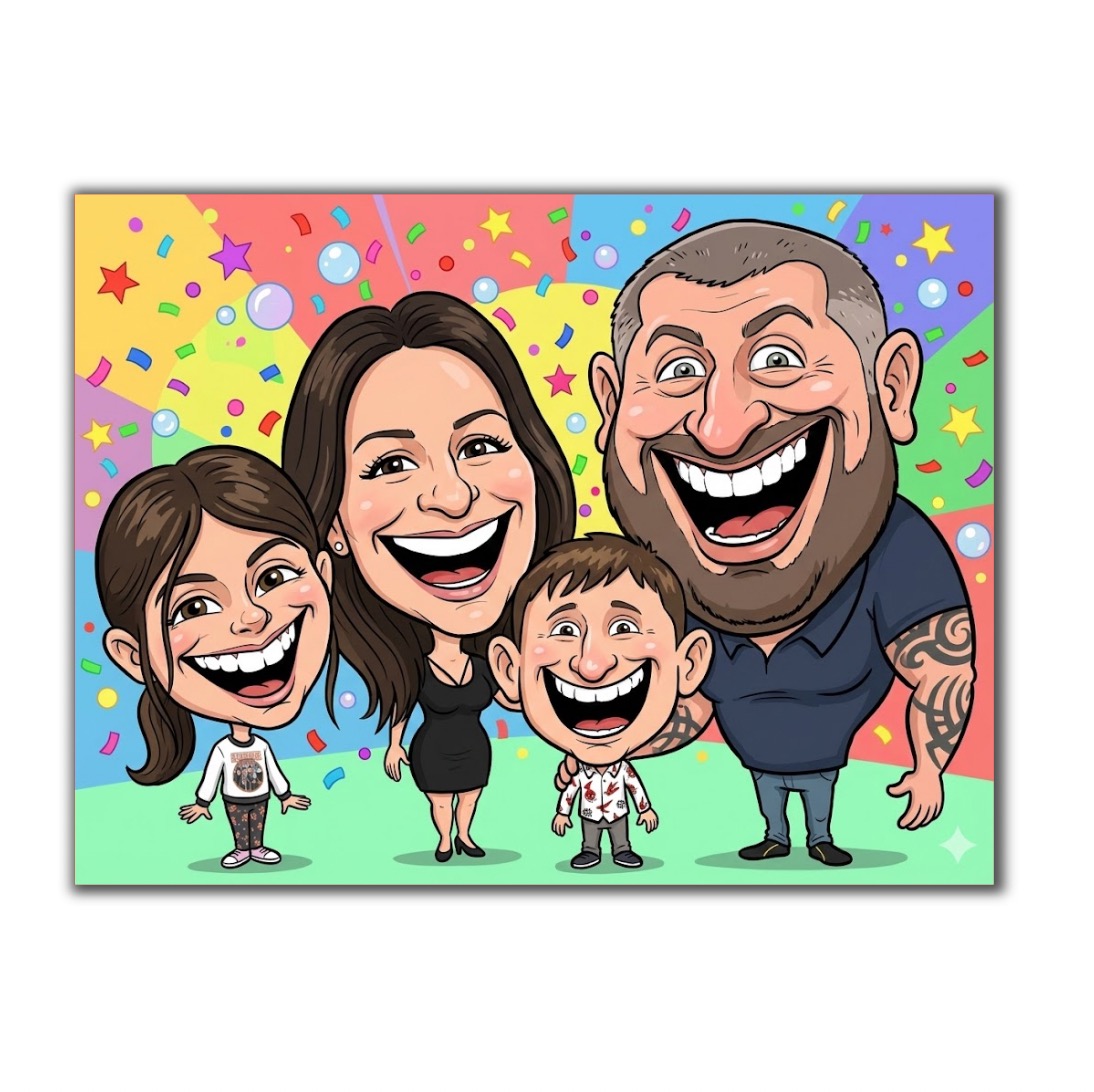 Vítejte v naší galerii karikatur, kde najdete ukázky naší práce a různé styly zpracování. Prohlédněte si karikatury kreslené podle fotky – od jemně humorných portrétů až po výraznější, nadsazené karikatury. Díky galerii si snadno uděláte představu o výsledku, úrovni detailu i možnostech.