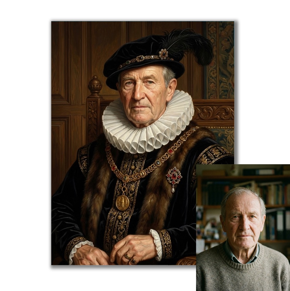 Dodáte vlastní fotografii a získáte portrét, ve kterém jste hlavní postavou vy – v aristokratickém pojetí, které působí důstojně a nadčasově.