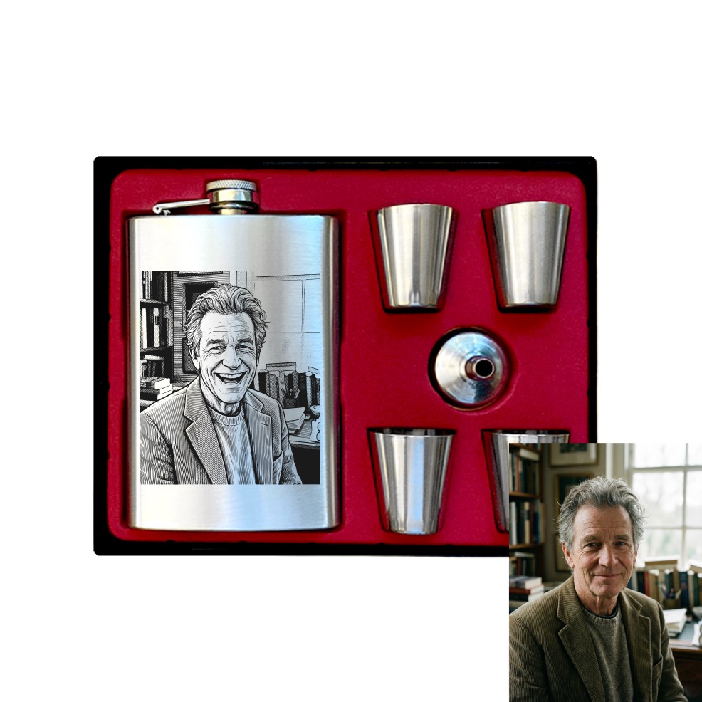 Stylový dárek, který nezapadne. Získáte elegantní placatku v dárkové krabičce, doplněnou o karikaturu ve „simpsonovském“ duchu a případně i o vlastní text – ideální na narozeniny i jako originální pozornost pro chlapa. Potěší na první pohled a udělá radost i při každém dalším použití.